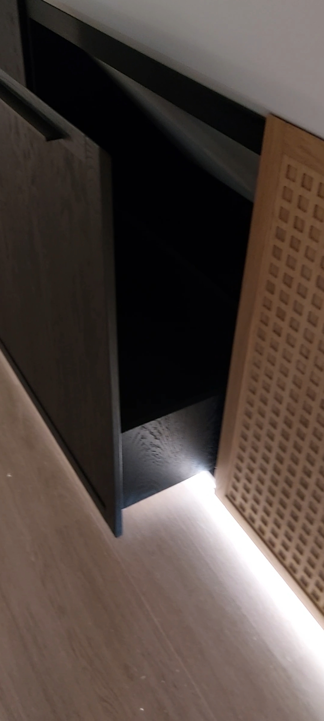 Фальш-стена с подсветкой и выкатными ящиками